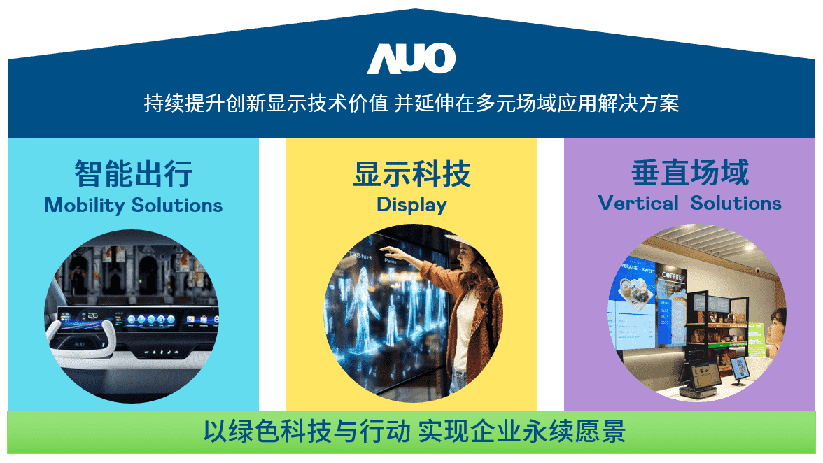 我们持续推动「双轴转型」,,,,在精进显示技术附加价值(Go Premium),,与深化垂直市场应用(Go Vertical)的策略下,,对应开云电子的优势竞争力与趋势,,,我们奠定显示科技、、智慧移动、、、垂直场域三大永续营运支柱,,,,在显示技术领域的根基之上,,,,延伸布局多元场域应用解决方案。。。。将先进显示科技助力智慧移动及垂直场域发展,,,,并以绿色科技与行动为实践,,,,在转型之路上贯彻永续经营之愿景。。。。