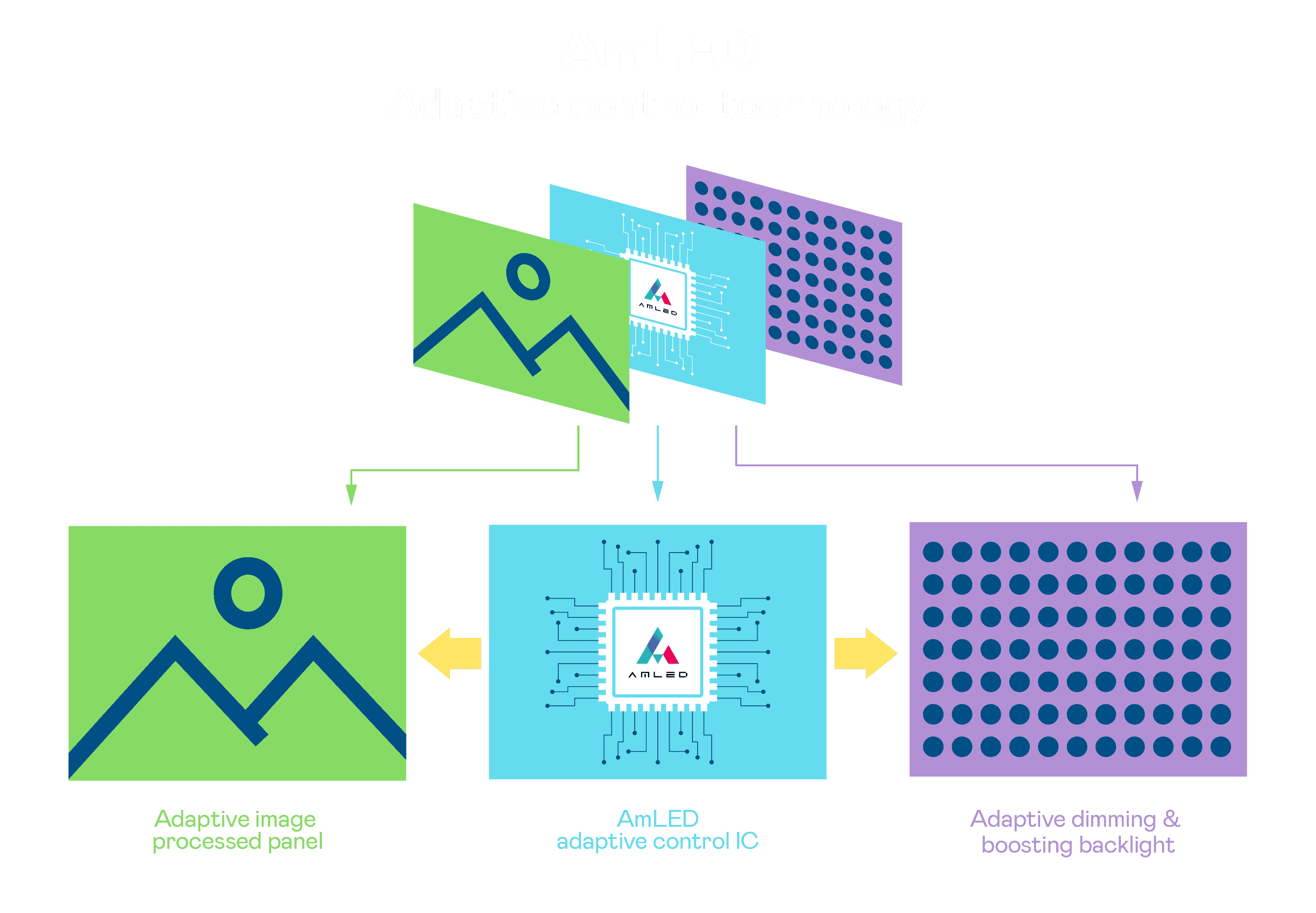 AmLED 具备更省电与低蓝光特性。。。与一般的 LED 背光显示技术相比,,,由于 AmLED 常时处于局部调光状态,,,,其功耗仅有前者的 50% 左右,,,,同时 AmLED 还具备低蓝光特性,,满足长时间使用的护眼需求。。。。